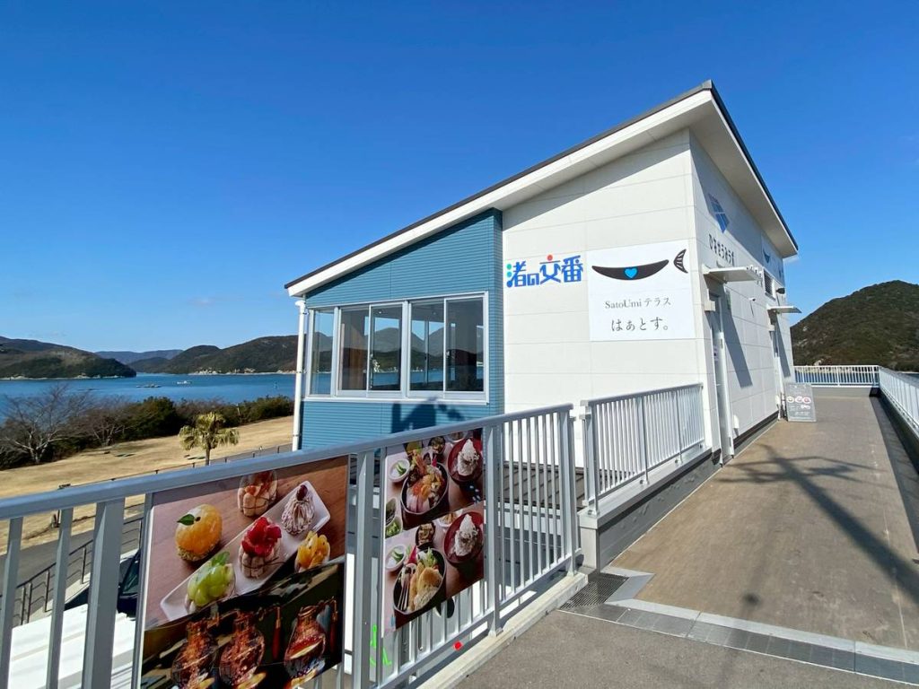 備前♡日生大橋をこえて、頭島へ。渚の交番「ひなせうみラボ」の2階にレストラン「SatoUmiテラス はぁとす。」があります。