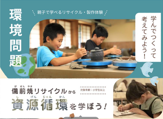 廃棄物削減と再生利用促進のため、流通できない陶器や破片を粉砕、配合した土を使用した陶芸体験を実施しています。伝統産業における地域活性化の実現を目指しています。