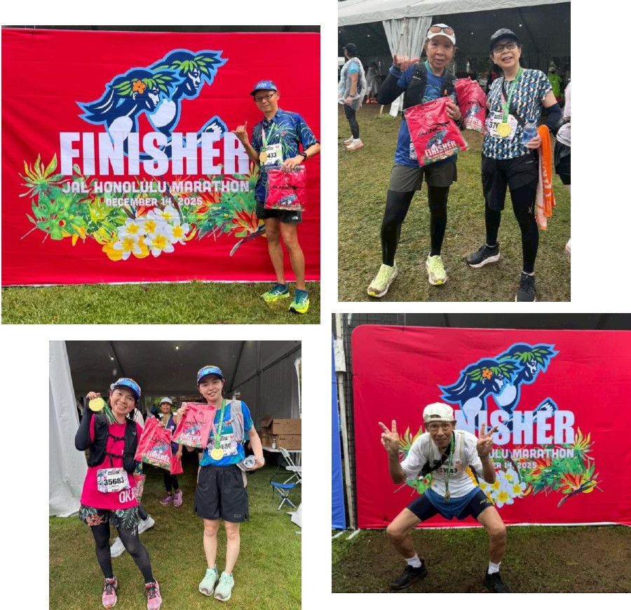 スタート前から、ハワイでは珍しい大雨に見舞われたため、足元が悪く、なかには、今回のホノルルがフルマラソン初参加という方もいらっしゃいましたが、皆様無事に完走!