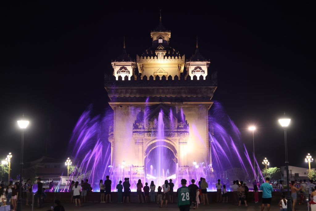 フランス・パリの凱旋門を模して造られた西洋風の構造を持ちながら、屋根や装飾にはラオスの伝統的な彫刻や仏教的なモチーフが随所に施されており、西洋と東洋の文化が融合したユニークなデザインが特徴です。
