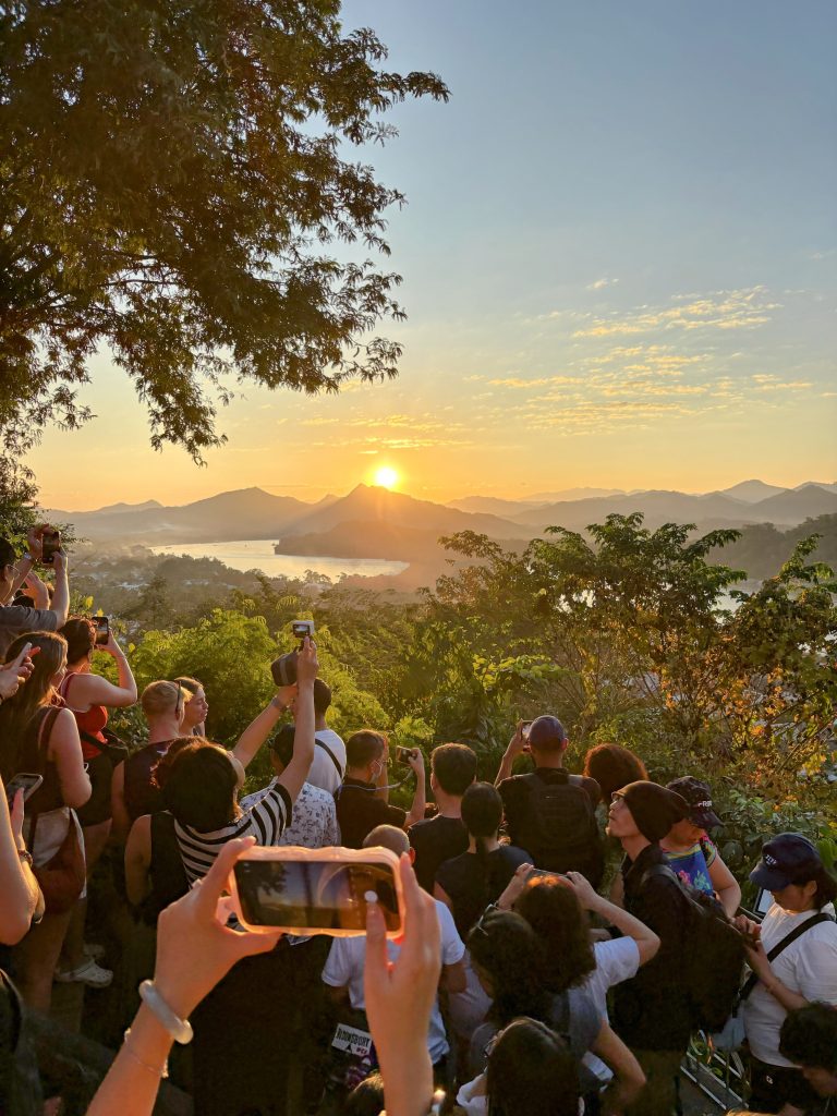 丘の頂上からは、ルアンパバーン全体を見渡すことができます。特に有名なのが、メコン川に沈む夕日です。茜色に染まる空と川、そしてその下に広がる世界遺産の街並みは息をのむ美しさで、多くの観光客が夕暮れ時を目指して登頂します。